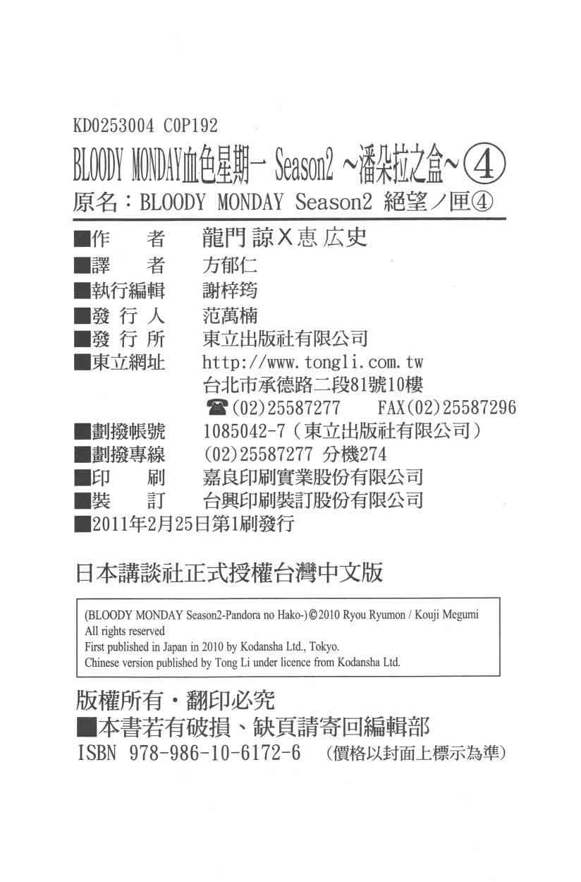 《血色星期一Season2 绝望之匣》目录