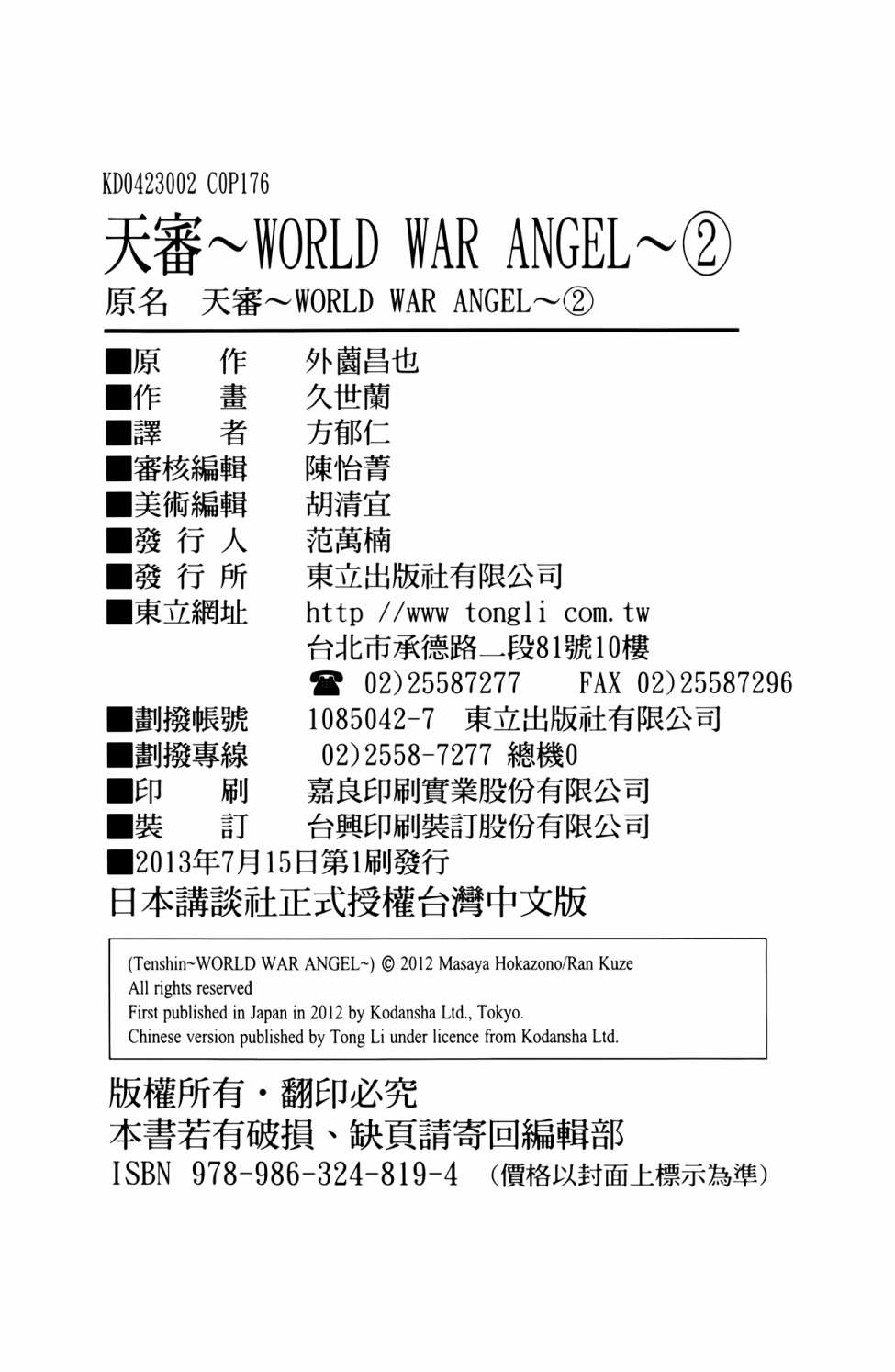 《天审WORLD WAR ANGEL》目录