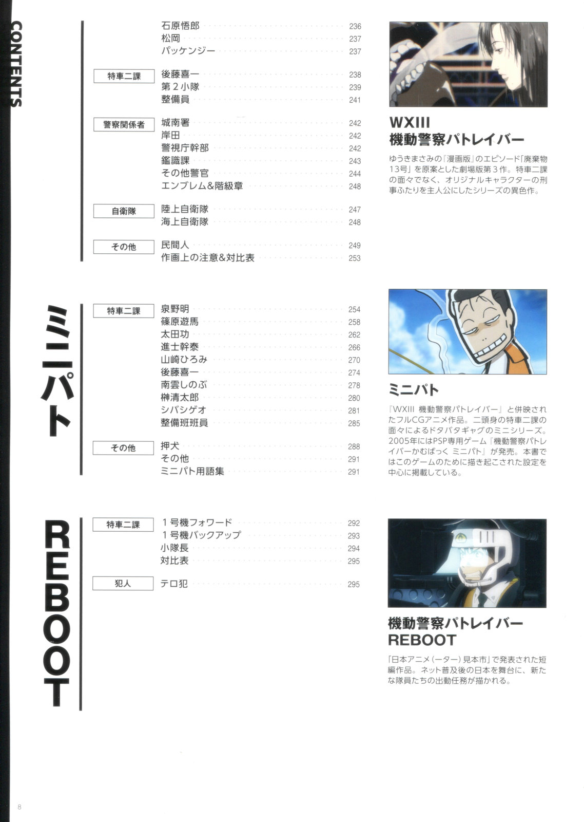 《机动警察PATLABOR 35周年 美术设定集》目录